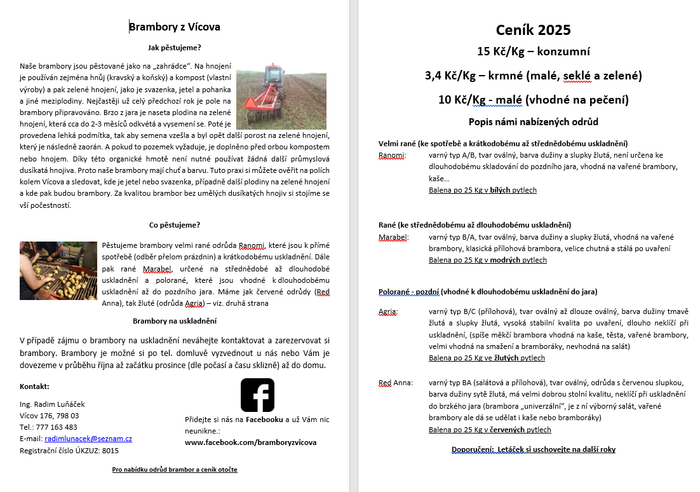 Do naší obce přijede soukromý pěstitel brambor z Vícova.