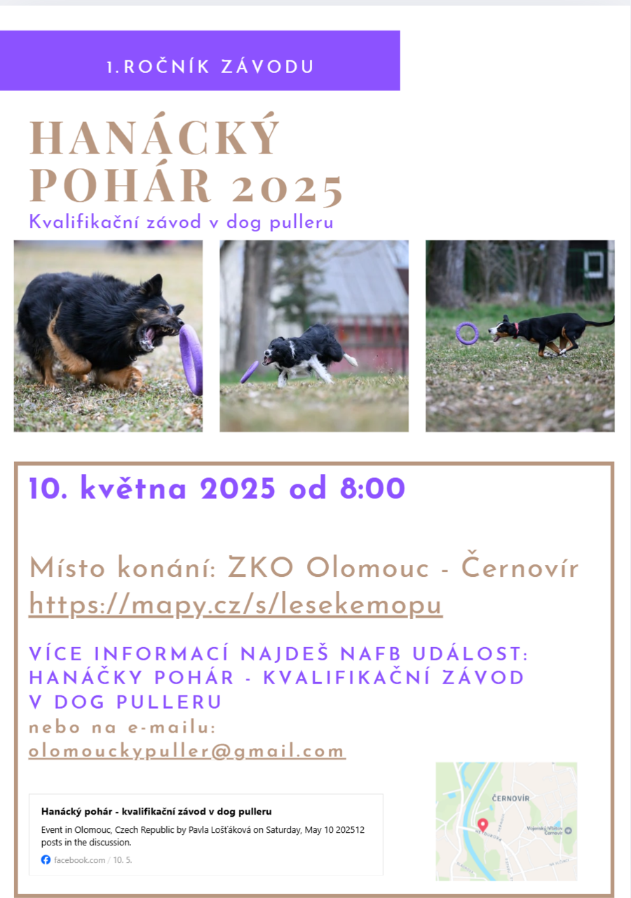 Úvod > Život v obci > Aktuality > Hanácký pohár v dog pulleru - 10.5.2025 v Olomouci