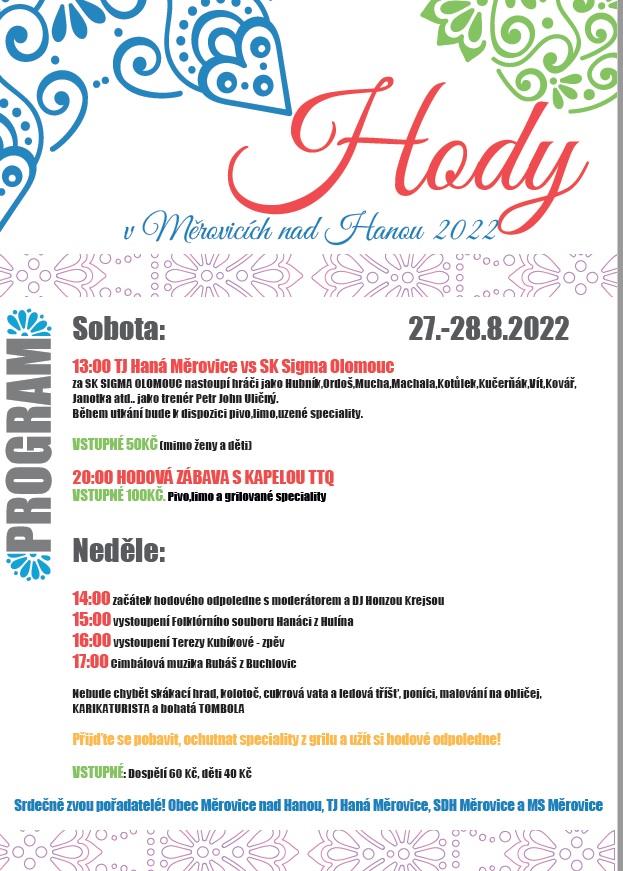 Úvod > Život v obci > Aktuality > HODY V MĚROVICÍCH 27.-28.8.2022