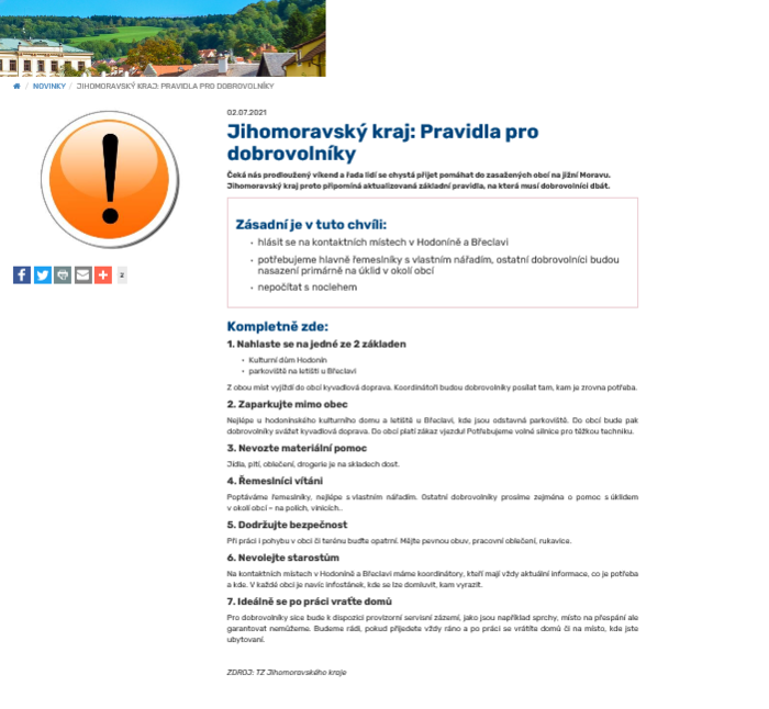 POZOR! Informační krizová linka Jihomoravského kraje, sbírající humanitární pomoc i nabídky od firem pro postižené oblasti zasažené tornádem na Hodonínsku a Břeclavsku, UKONČILA svoji činnost v pátek 9. července 2021 v 18:00.