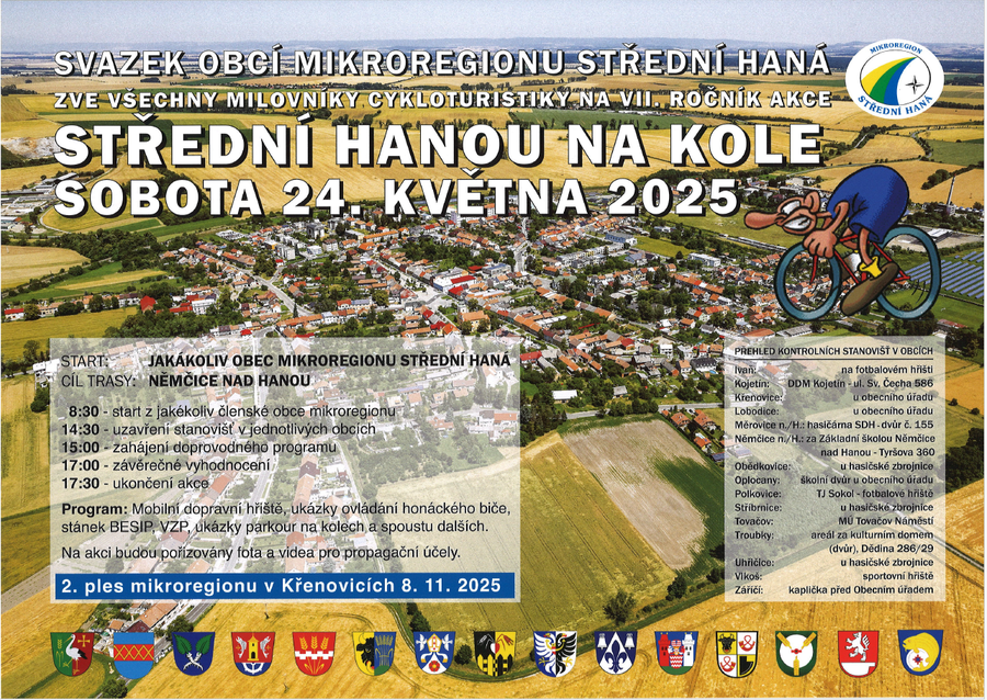Úvod > Život v obci > Aktuality > Střední Hanou na kole - sobota 24.5.2025 - cíl v Němčicích nad Hanou